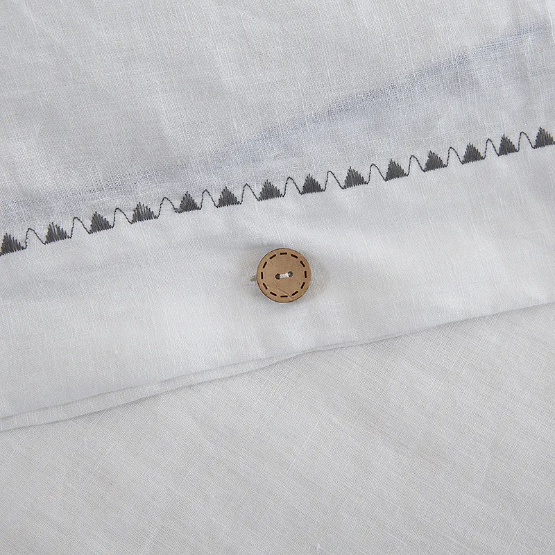 Elevate your bedroom with the timeless elegance of our White Floral Ruffled Embroidered Linen Bedding Set. Crafted from 100% natural premium linen, this 3-piece embroidered duvet cover set is soft, breathable, moisture-wicking, and exceptionally durable—offering year-round comfort and a luxurious sleep experience.