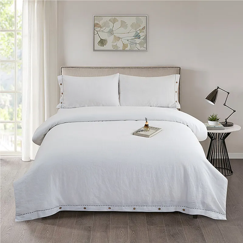 Crafted from premium natural linen, the fabric offers exceptional breathability, moisture-wicking performance, and long-lasting durability. The delicately embroidered floral ruffled edges add a touch of sophistication and romantic charm, elevating your sleep space with effortless luxury.