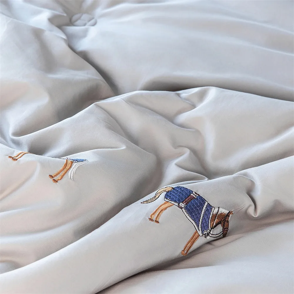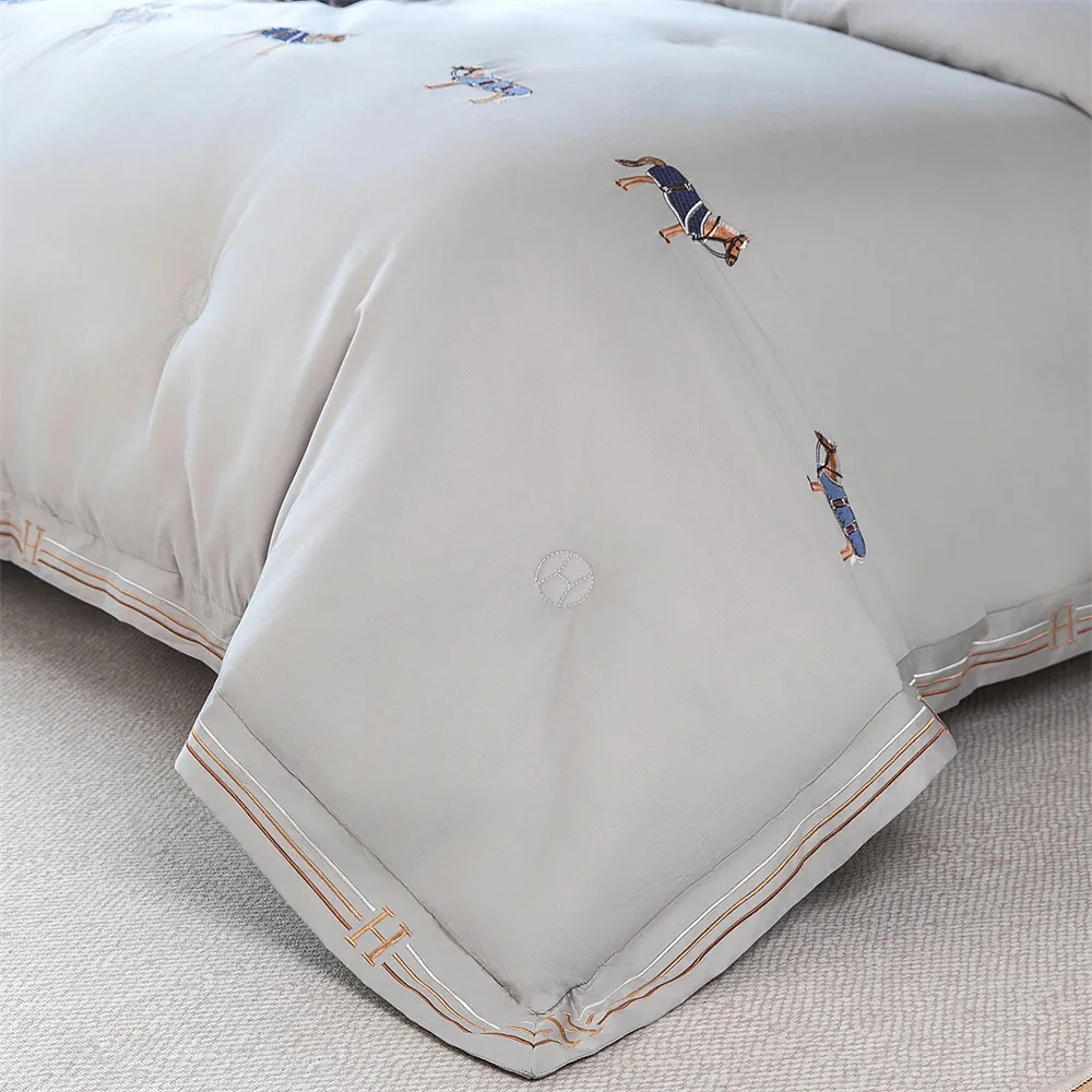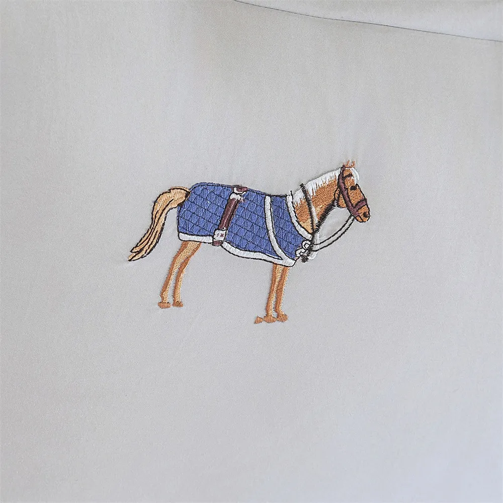 Add charm and comfort to your bedroom with this luxury 3-piece quilt set, crafted from premium white cotton silk for a soft, smooth, and breathable sleep experience. Featuring delicate pony embroidery, this set brings a playful yet elegant touch, making it perfect for modern bedrooms, children’s rooms, or gift sets.